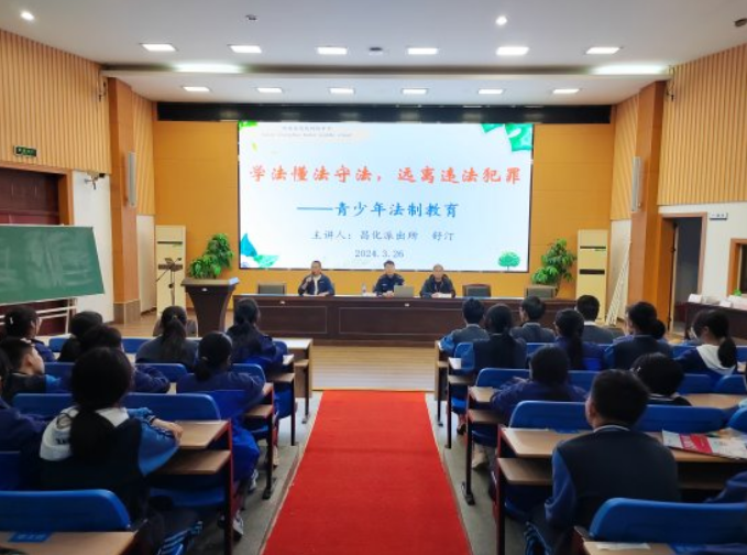 昌化初中高度重视普法和安全教育工作,除邀请民警进校宣讲外,还通过召开主题班会、组织知识竞赛、发放告家长信等多种形式开展防欺凌教育。3月26日晚上,学校特意邀请法制副校长、昌化派出所副所长舒警官为全体初二同学上了一堂题为《学法懂法守法,远离违法犯罪》的法治教育课,同样使学生获益匪浅。