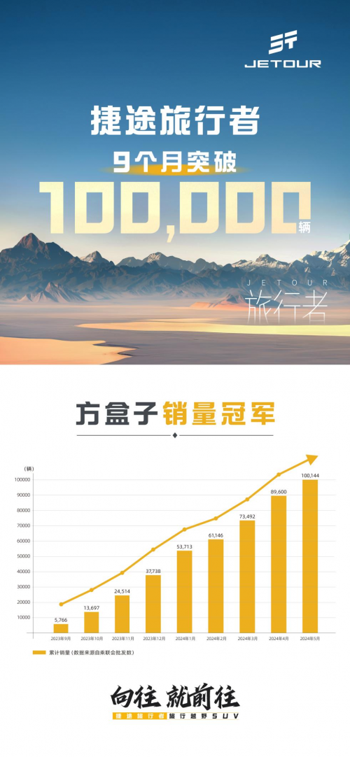 截止2024年5月,捷途汽车的累计销量已经达到了惊人的100144辆,同比增长率高达106.9%。这一数据再次印证了“捷途速度”的传奇,也让捷途汽车在中国乘用车和SUV市场的激烈竞争中脱颖而出。而此次携手明星共同交车的举措,无疑将进一步提升用户对捷途汽车产品价值与品牌情绪价值的认知和认同。